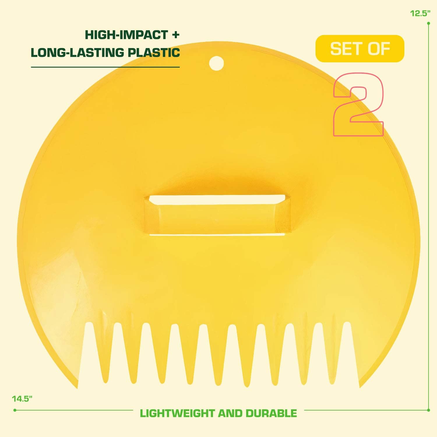 Get your yard cleanup done faster and easier with this 2-pack of professional-grade leaf scoops. Designed for both hands, these tools revolutionize how you handle leaves, grass clippings, twigs, and mulch.